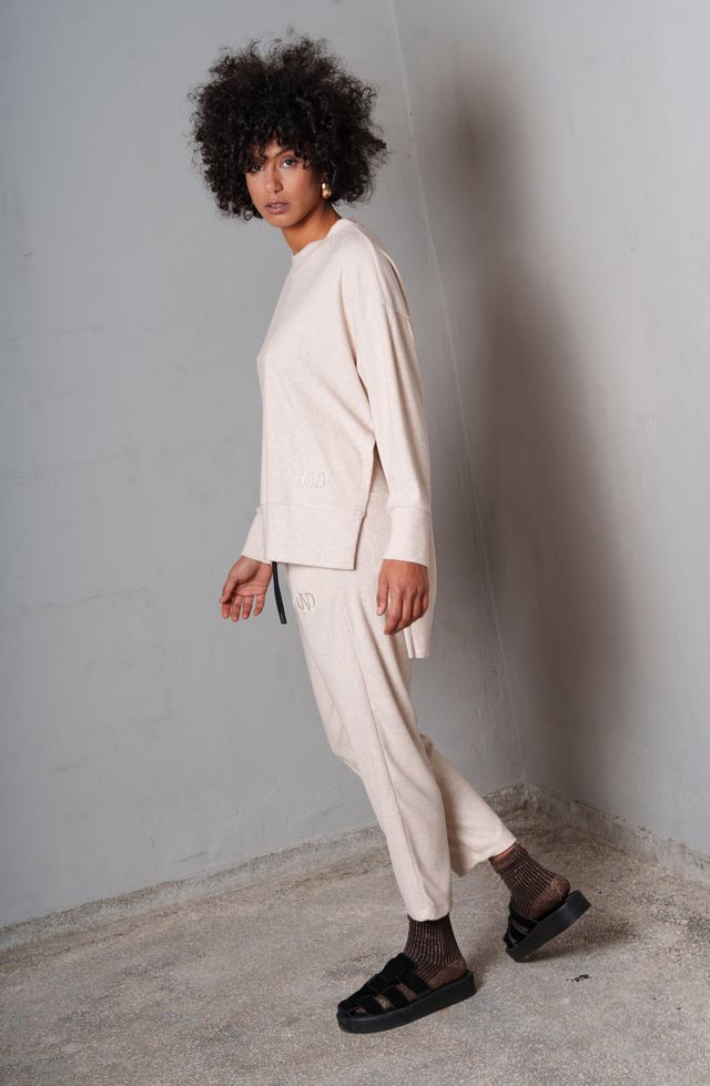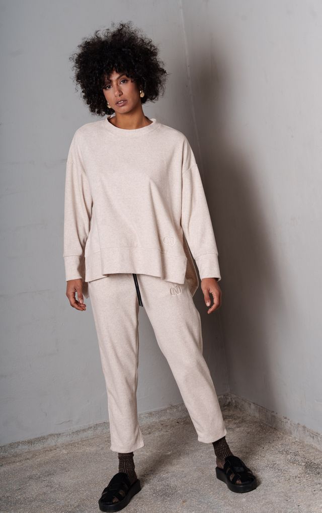 Πλεκτή απαλή φόρμα-παντελόνι σε carrot γραμμή Ελαστική μέση με κορδόνι Κεντητό λογότυπο CN Πλαϊνές τσέπες Συνδυάστε το με το Planet top Tο μοντέλο φοράει μέγεθος s