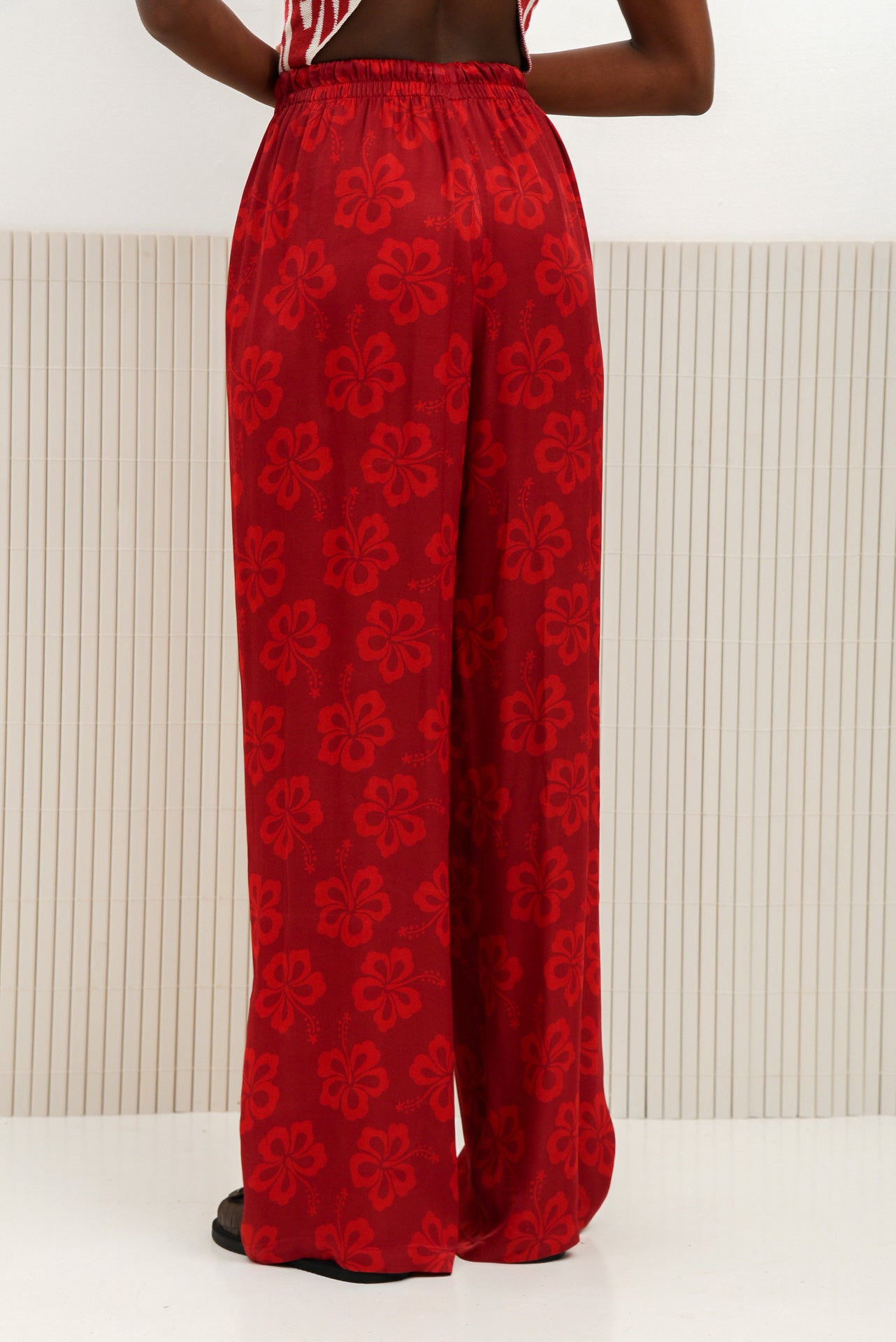 The Hibiscus Pants combine comfort and style with a relaxed, wide-leg silhouette and a vibrant floral print. Made from breathable, lightweight fabric, they feature an elastic waistband with an adjustable drawstring for the perfect fit. Ideal for effortless summer looks, these pants bring a bold yet relaxed energy to any outfit.